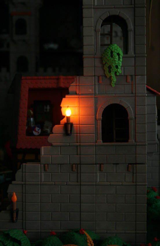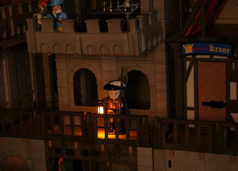 Dazu wollen wir alle Fackeln, Lagerfeuer und Laternen mit Led Leuchten (auch flackernd) bestücken. Einige Zimmer der Burg sollen von innen beleuchtet werden.