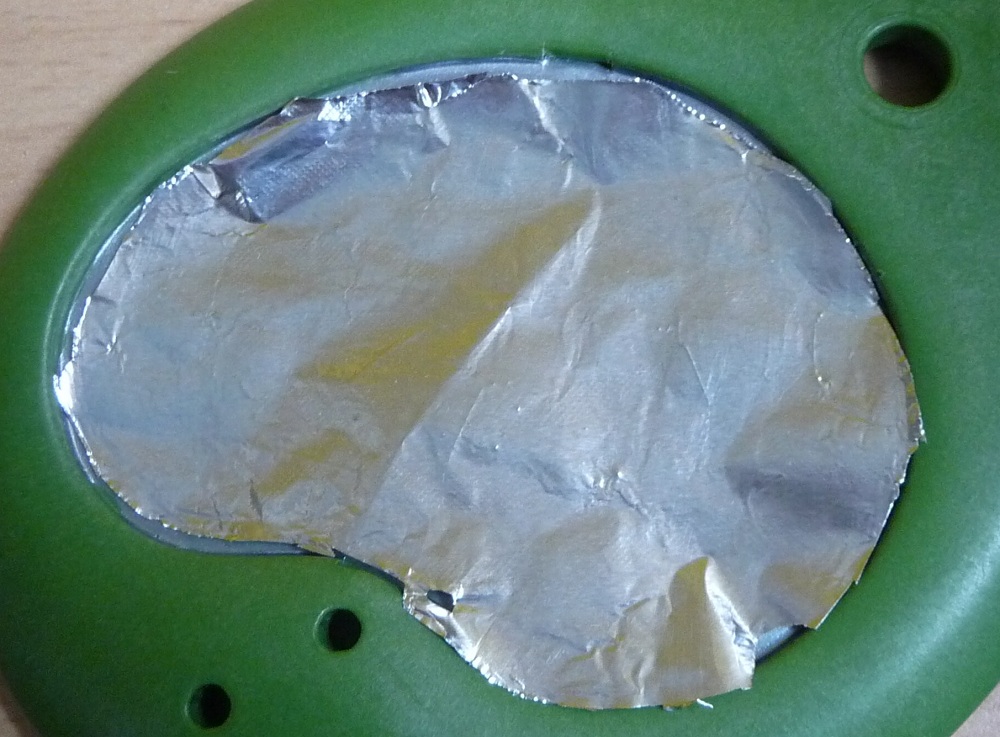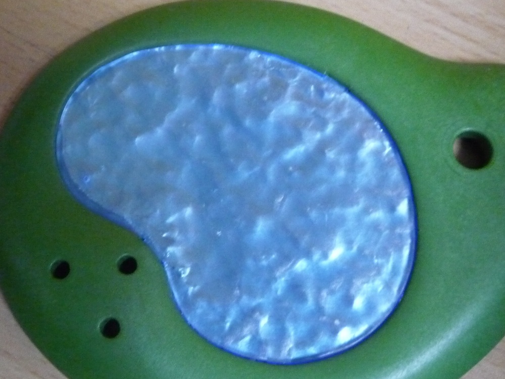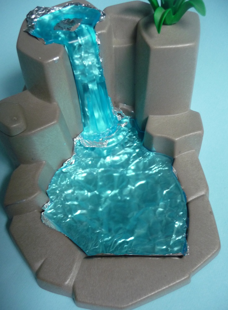 Zunächst habe ich das "Wasser" ausgebaut und den Teichgrund silber gestrichen, aber es geht viel einfacher und sieht noch besser aus, mit Alufolie!