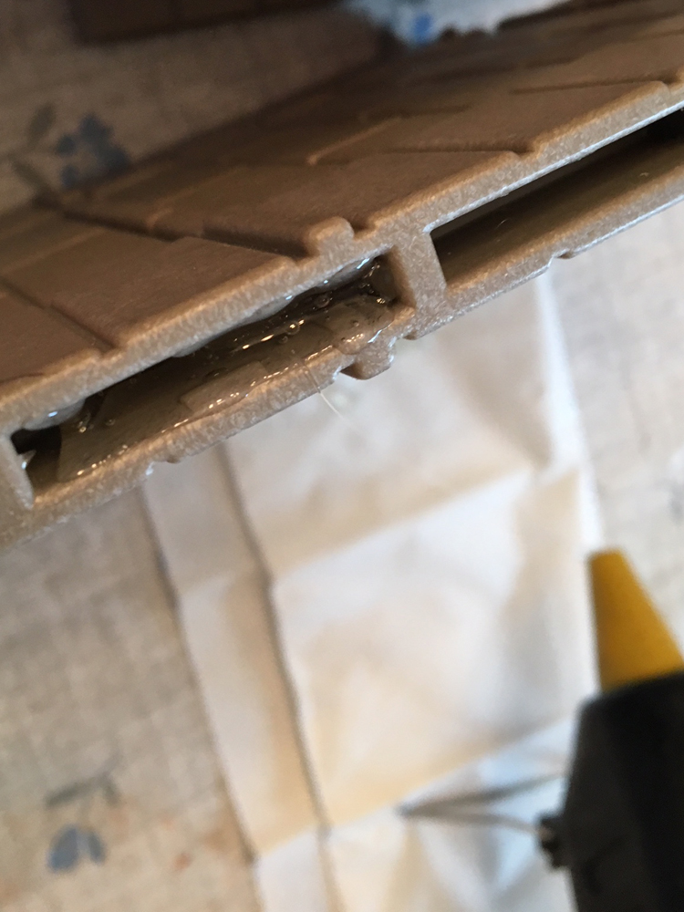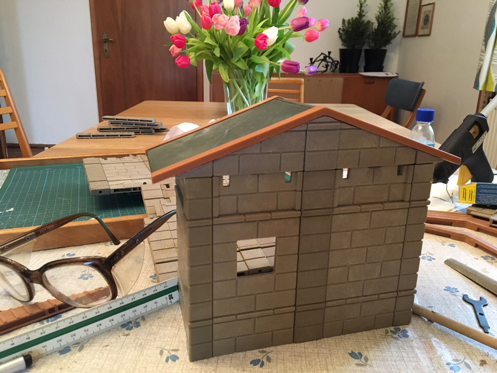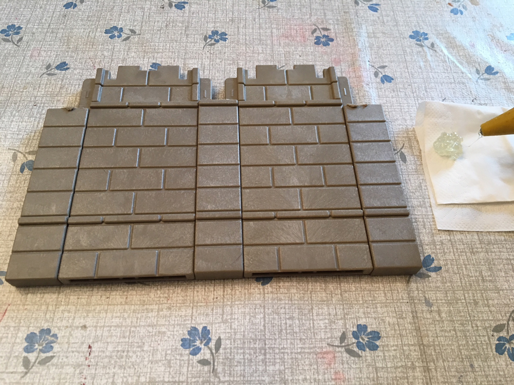 Mauerteile gut mit Heißkleber verbinden, dass eine feste Platte entsteht: