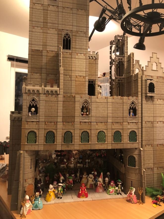 Die Burg/Schloß habe ich irgendwie verpasst. Gefällt mir außerordentlich gut. Genau mein Geschmack, die Symmetrien oft zu brechen, damit eine gewachsene Struktur erscheint. Schade, dass man die meisten Dächer nicht von Playmobil Original haben kann (bzw. nur mit viel. sägen, feilen, hobeln, spachteln, kleben hinbekommt).