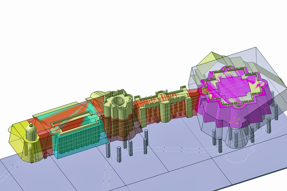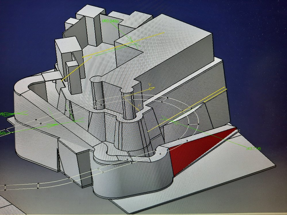 Die eine Seite sanft abfallend - bewaldet. Die andere schroff und felsig. Letzte Untersuchungen am CAD, ehe es an die Umsetzung geht. Die Größe des Dios bereitet mir Kopfzerbrechen.