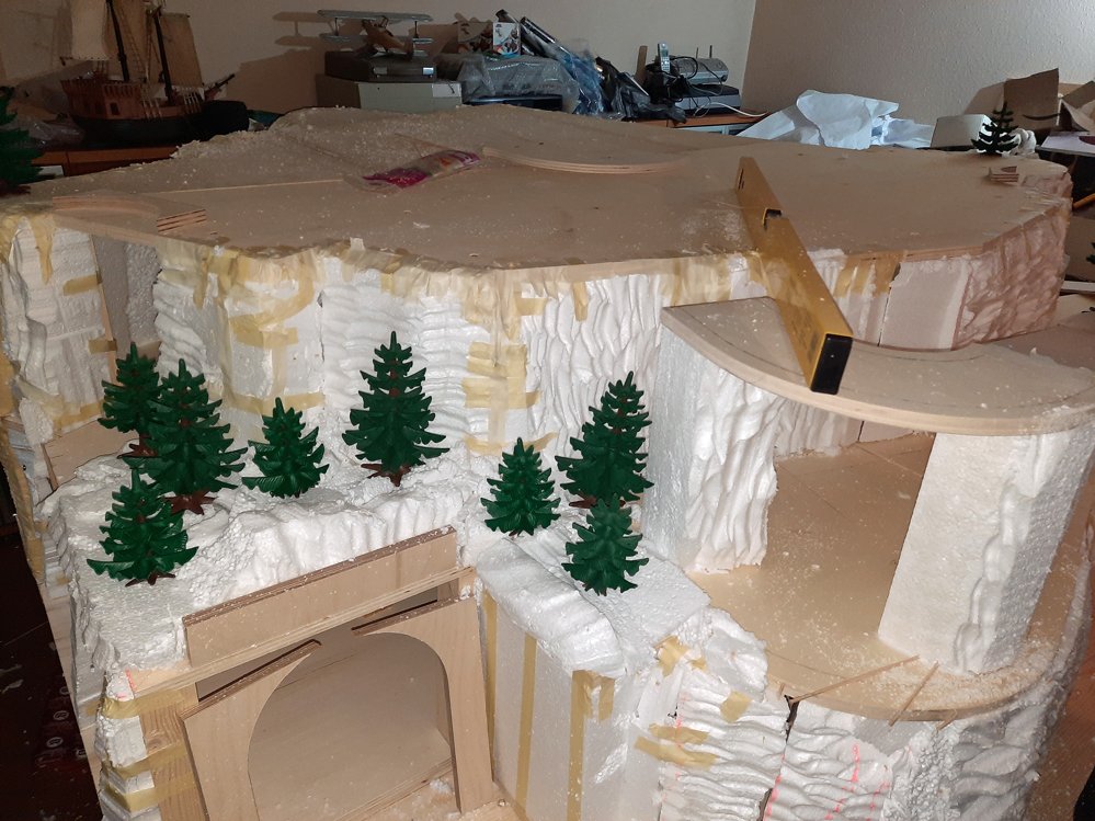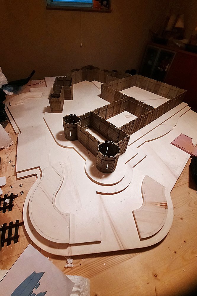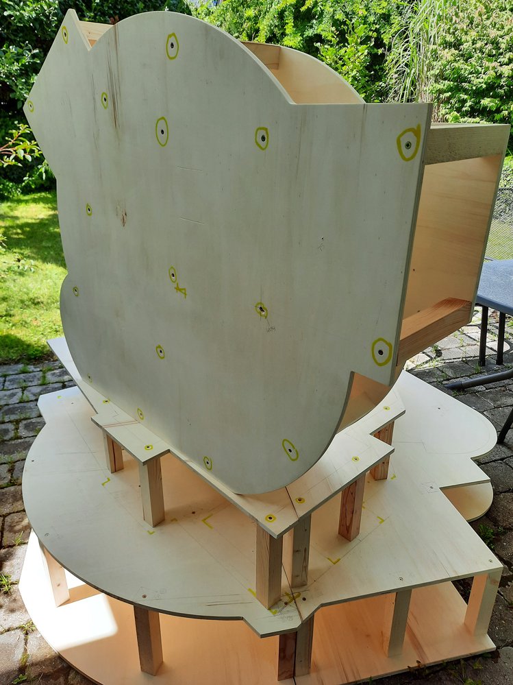 III. Ich habe mir wie bei den Tischplatten Hilfe geholt: Ein befreudetes Modellbauunternehmen hat mir die Platten für den Schlossberg nach meinen CAD-Daten gefräst. Meine Frau fragt sich kurz vor unserem 30. Hochzeitstag, ob ich verrückt geworden bin. Die Stützen folgen in Kürze. Alles in Leichtbauweise, denn schließlich muss alles transportiert werden ... Schon jetzt ist das Dio ein Fall für die Logistik.