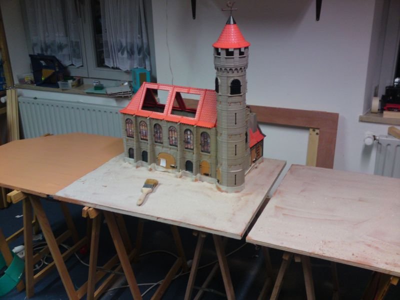 Das Kloster fehlt noch. Hier brauche ich wieder eine Leihgabe, da ich selber die Teile (und v.a. Figuren) nicht habe. Bis Herbst wird diese Lücke gefüllt sein.