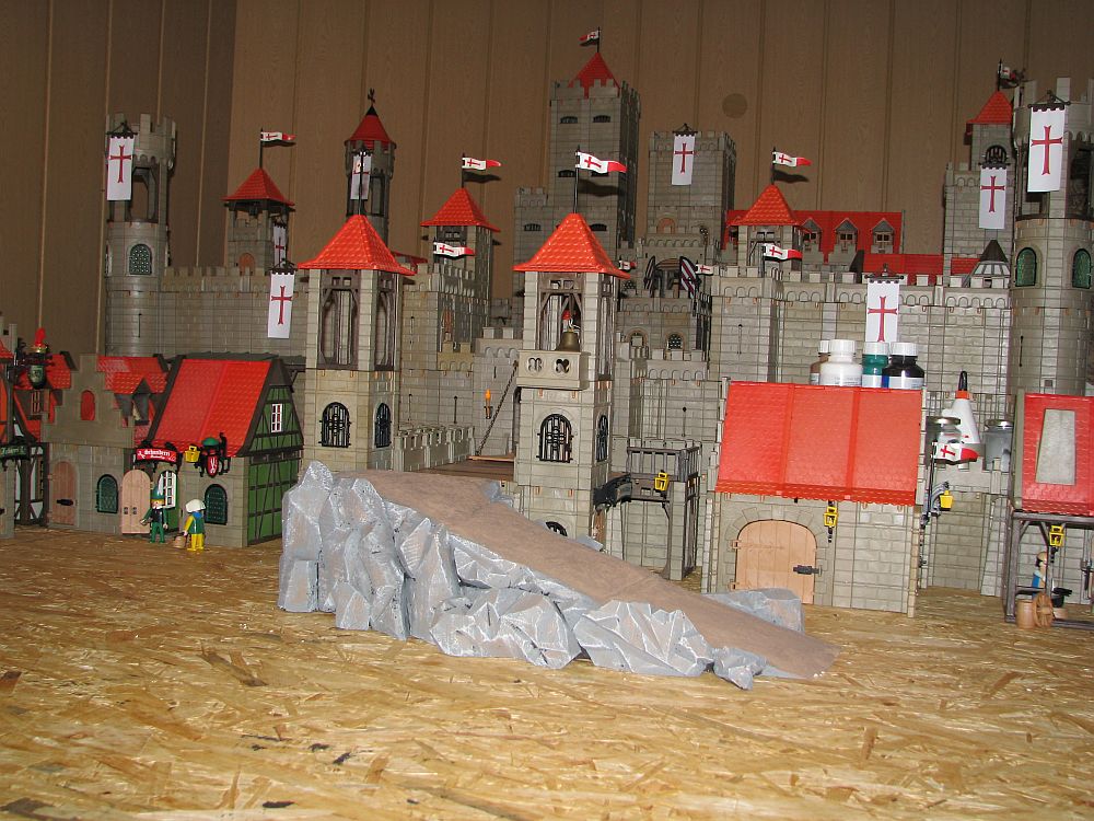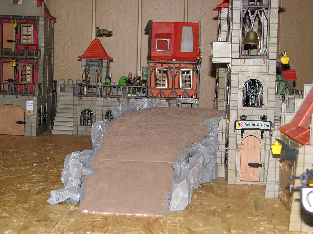 So, hab mal wieder etwas weiter gemacht.....die ,, Auffahrrampe ,, hab ich mal etwas verfeinert, zudem hab ich auf die linke Seite nocheinmal den Schuldturm gestellt, allerdings Seitenverkehrt.