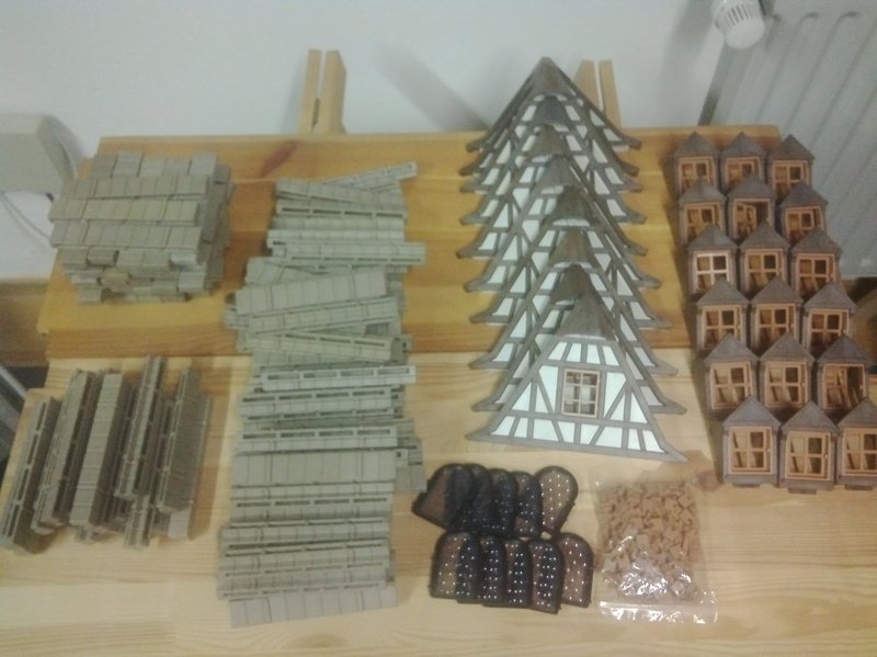 1. Den "Holzerbinder" hab ich da, aber der nimmt auch nicht wirklich diese Fachwerkoptik auf. Ich werd' mal probieren, ob das besser paßt. Grundsätzlich werde ich jetzt im ersten Durchgang erstmal zusehen, daß ich alle Gebäude wieder so hergestellt bekomme, so daß ich im Februar schon mal ausstellen kann (da tut's zur Not auch ein Steinverbinder - die Leute, die sich diese Ausstellung ansehen, achten sicher in erster Linie auf andere Details :wink ). In dem halben Jahr Pause, bevor die Ausstellung dann bei uns stehen wird, kann ich noch ein wenig nachbessern (z.B. das Haus auch farblich noch anpassen).