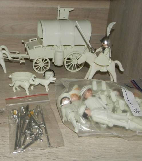 Pferde für die Reiter sind Generation 1°, weil sie grosser sind als Gen. 2° und mit Mittelalter-Kleinteile ausgestattet werden können, und um doch auch bei den Tieren die Verbindung mit dem Orignal zu behalten. Keine Gen. 3° Pferde weil dafür (noch) kein (geeignetes) Mittelalter-Zubehör verfügbar ist.