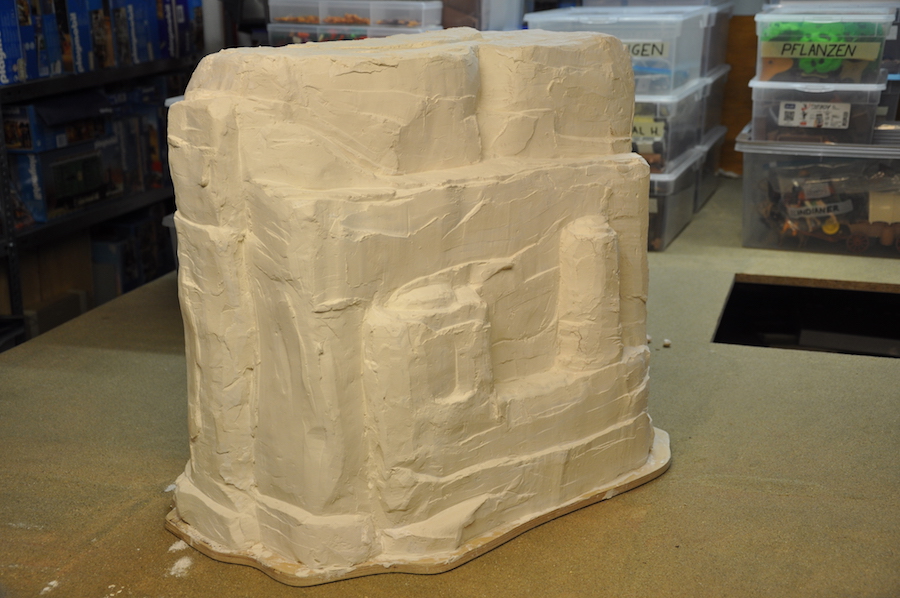 Sweetwater ist gänzlich in die Kisten gewandert. Ausserdem konnte ich mich ein wenig dem Berg fürs Dio widmen: Das Styropor-Gerippe wurde mit Gips überzogen. Was jetzt noch fehlt, ist die Bemalung.
