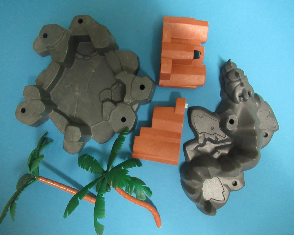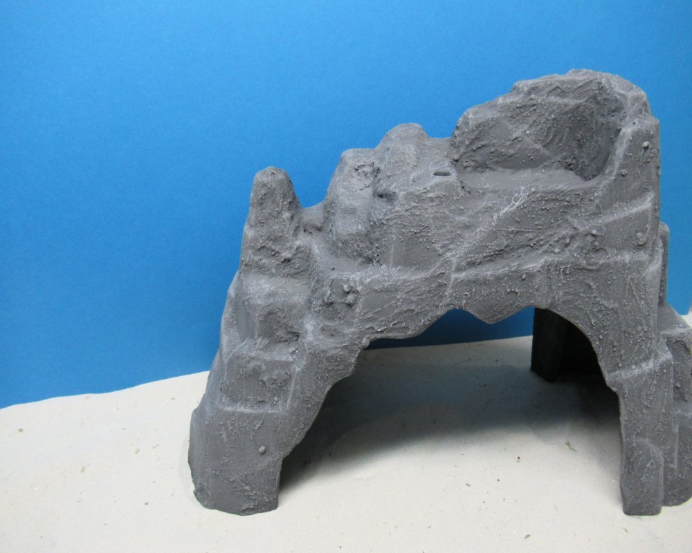 Aber wahrscheinlich würde ich mir Handelsüblichen Gips anrühren und die Felswände damit überziehen. Leicht, mal mehr, ohne Planung, einfach nach Bauchgefühl. Dann alles mit gut Verdünntem Wasser in dunkelgrau anstreichen, bis kein Weiß mehr durchschimmert. Nach dem Trocknen - geht schnell - nimmst du den Farbton den du magst und streichst drüber. Die Vertiefungen blieben dunkel. Wieder Trocknen lassen und mit hellem Farbton drüberbürsten.