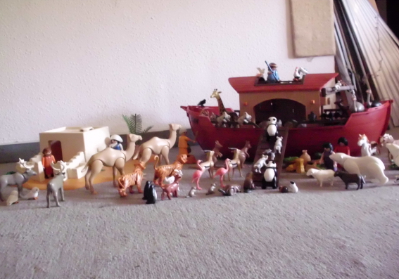 Heute hatte ich eine Riesengaudi im Kindergottesdienst! Erster Testlauf für meine Noah-Szene. Die Kinder haben begeistert mitgespielt und tolle eigene Ideen gehabt! Hatte leider keine Kamera dabei, und daheim hab ich noch Jericho aufgebaut. Bilder gibt's, wenn ich Jericho abgebaut habe.