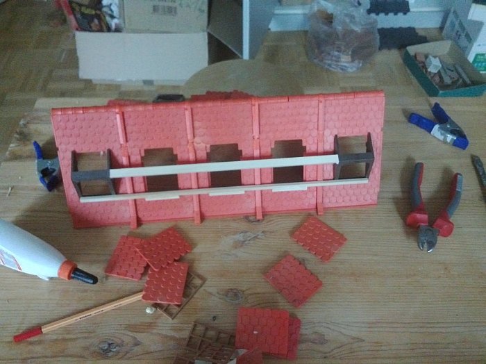 Grundsätzlich ist mein Plan, jetzt erstmal alle Gebäude aufzubauen, um zu sehen, welche Teile ich tatsächlich noch brauche. Das soll bis Ende Oktober erledigt sein. Dann habe ich bis Jahresende Zeit, die Details wie das unsauber geklebte Dach oder das nicht passende Fenster nachzubessern.