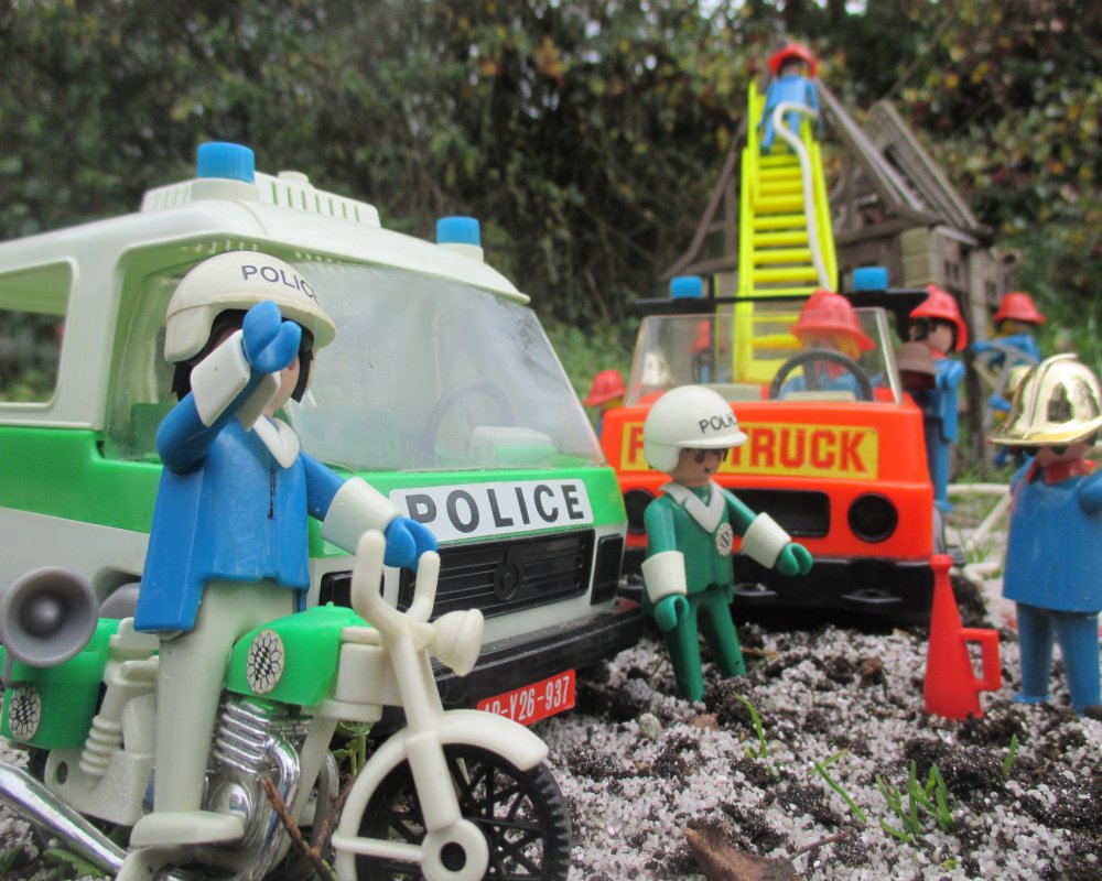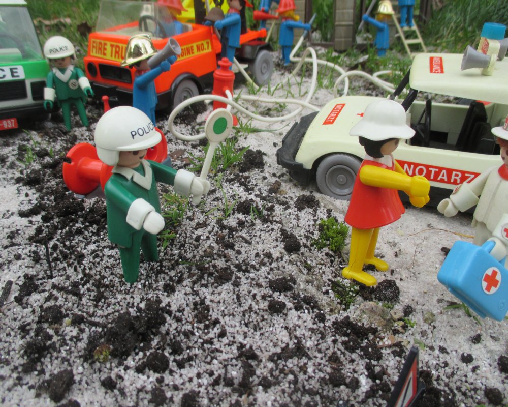 mit der Feuerwehr, der Polizei und dem Notarzt.