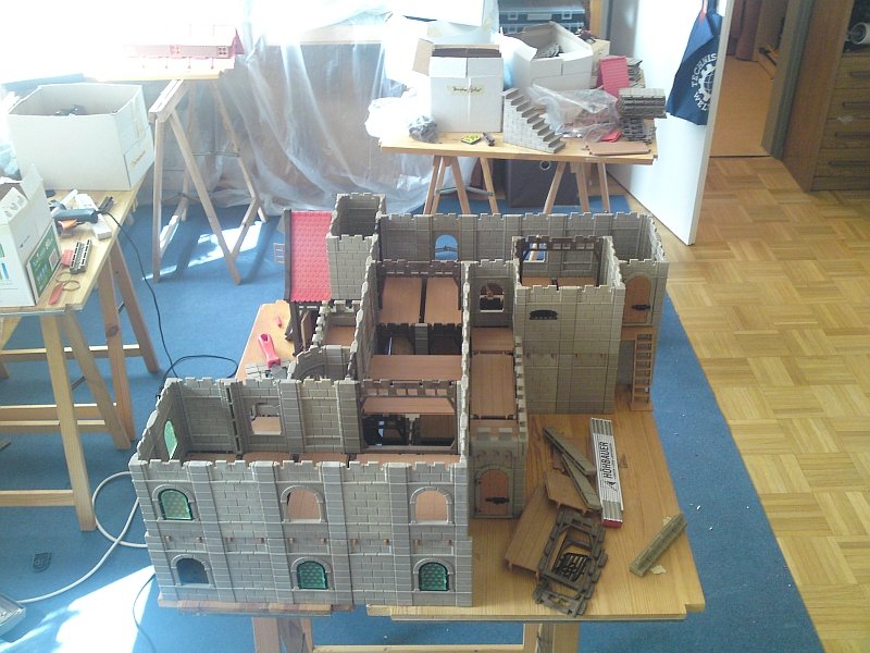 Wer gerne tüftelt kann ja mal überlegen, wo hier später mal das Dach sitzen wird - und wierum der Zwischenbau dann in der Wartburg sitzen wird :pfeif .
