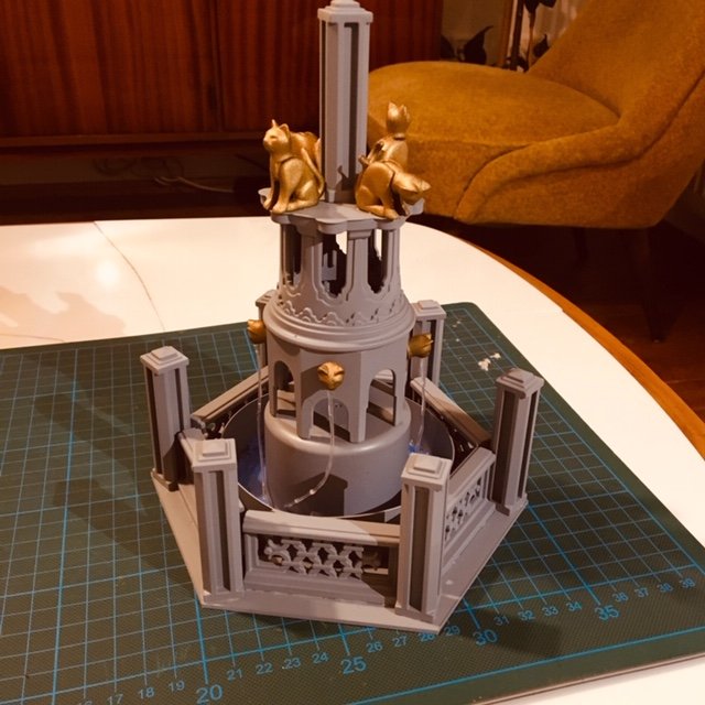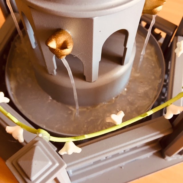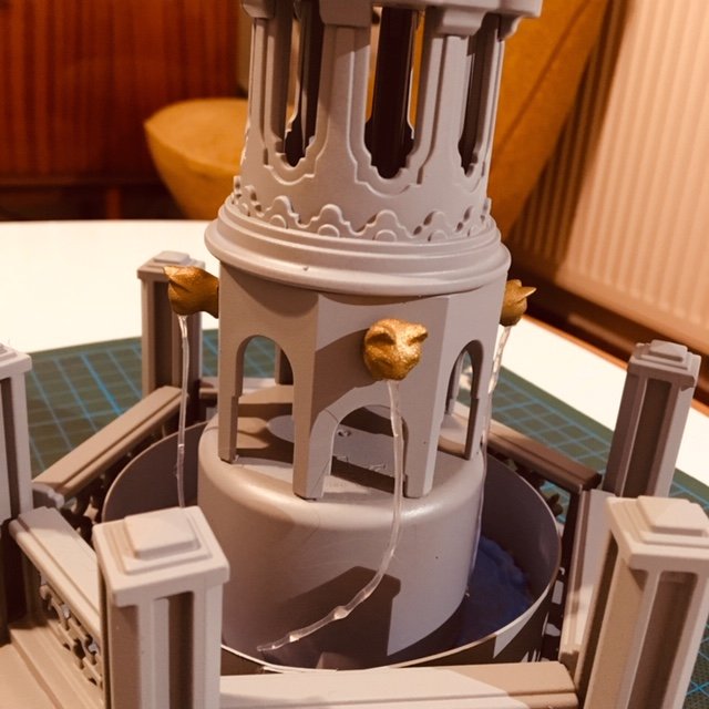 Nach der Goldlackierung war das dann einfach zu viel Gold, am Ende haben es nur Katzen auf den Brunnen geschafft,