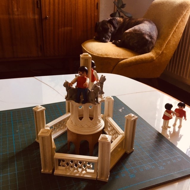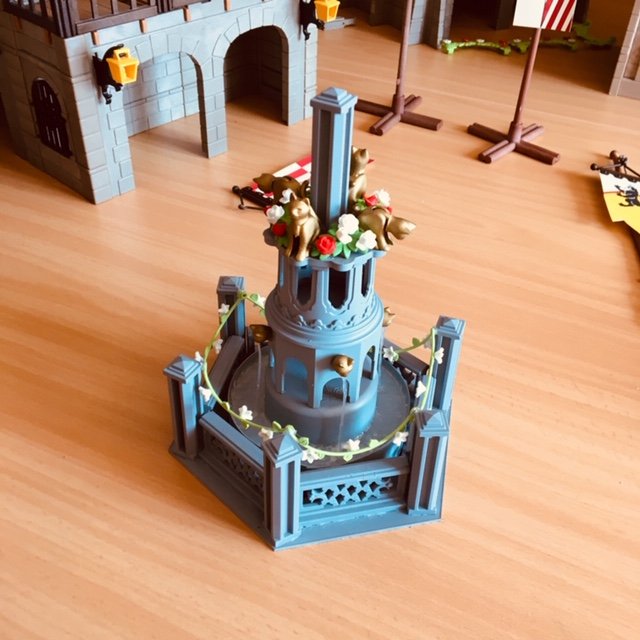 Als ich den Brunnen dann in mein Dio gestellt habe, dachte ich mir zunächst, "Mist, der Grauton ist schon arg anders als das 'Playmobil-Mauer-Grau'"