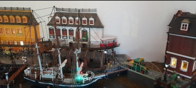 Was mir ehrlichgesagt nicht gefällt, ist der Anstrich des Hochbahnwagens. Der sieht mir zu "buntstiftmäßig" aus, da tät ich mir eine sauberere Fläche wünschen.
