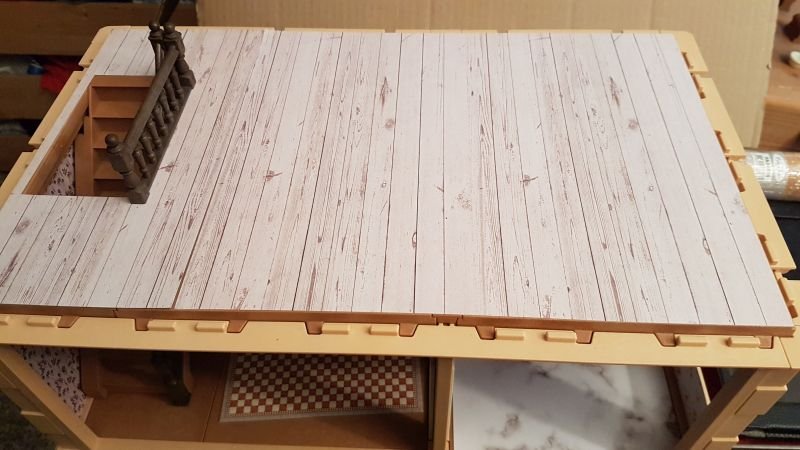 , als ich meinen Marinehafen mit Holzdielenboden bzw. Parkett ausstatten wollte - und auch nichts passendes gefunden, weder im einschägigen Bastelbedarf noch im Netz (da war zumeist die Auflösung schaurig oder die Bilder zu klein) - kannst Du mir evtl. die Firma verraten, die den Holzdielenbodendruck/-bogen herstellt? (und: gibt's den auch in "dunkler"?)