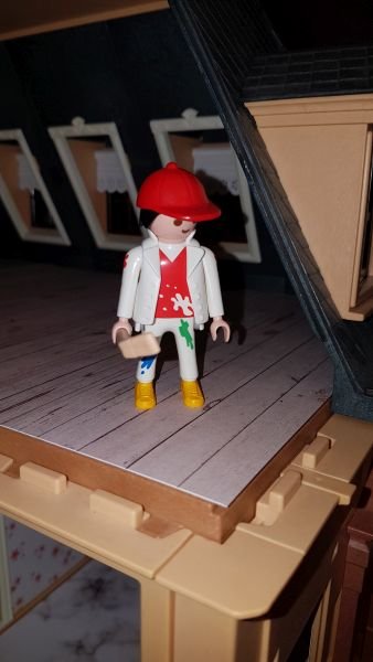 Einzig & allein mit dem Marmorboden wäre ich nicht so glücklich (ich nehme an, es ist DC-Fix-Folie, Schreibkarton o.ä.?), da die Musterung m.E. maßstäblich zu groß ist & der Boden zudem auch aus einem Stück zu bestehen scheint ... (wie haben die Häuslebauer den denn ins Haus bekommen? - also, die 7,5cm großen Häuslebauer - wie Du das gemacht hast, kann ich mir vorstellen
