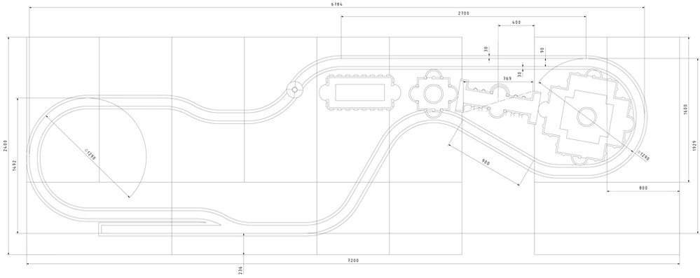 Die Tische und deren Beine sind montiert. Wir reden von 7,20 m x 2,40 m Diofläche.