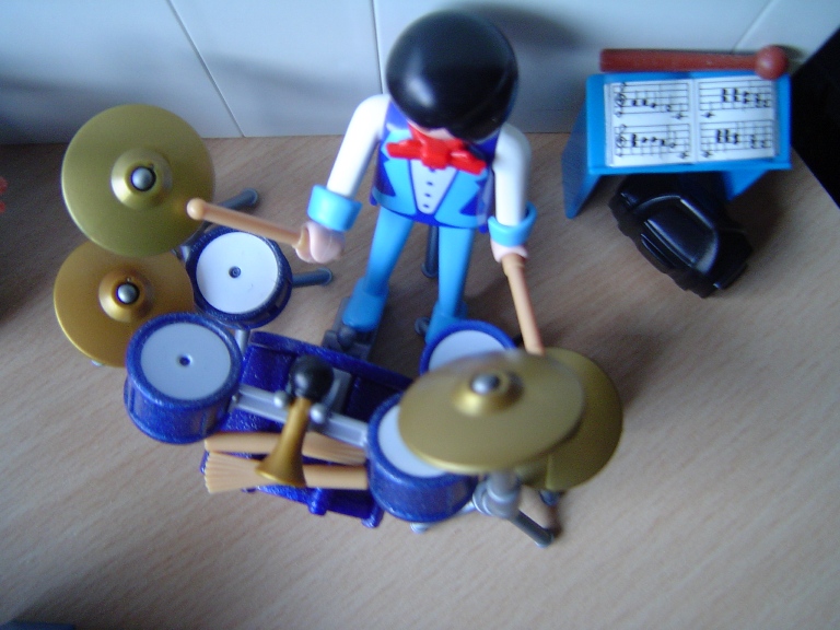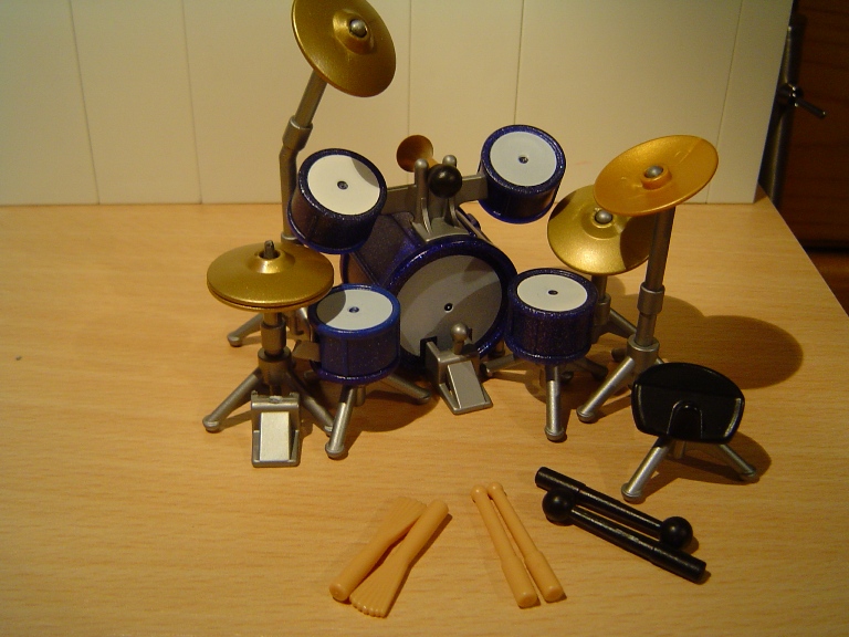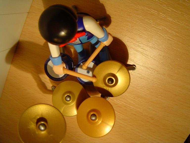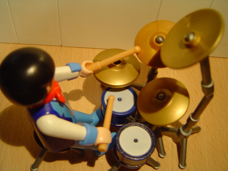 ) Und auch das Fusspedal an der Hi-Hat ist nur Idealismus, das Männchen kann mit der Snare vorm Fuß nur die Bassdrum-Fussmaschine erreichen, nicht beide Pedale. Aber naja, es ist halt immer noch Spielzeug und es ist ja schon toll, das soviel möglich ist mit Playmo.