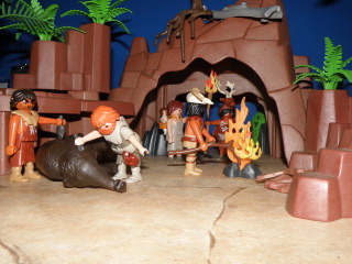 Die kleine Sippe kommt gerade von der Jagd und hat per Zufall diese schöne Höhle gefunden...
