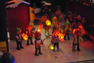 einige Fackeln; das Karussell; der Laternenumzug und der Eisdrache