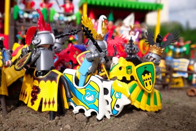 - Die Ritter sind falsch ausgerüstet, die in einem Kolbenturnier verwendeten Kolben haben nichts mit den von mir verwendeten Streitkolben gemein, besser wären noch (stumpfe) Schwerter gewesen