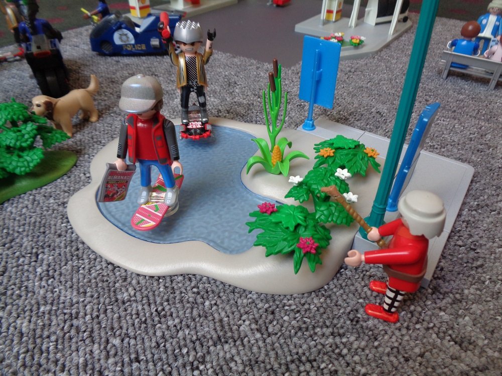 Biffs Enkel Griff wird verhaftet. Er ist ins Rathaus, bei der Verfolgung von Mc Fly jr. (Marty ist es), ins Rathaus gekracht. Dadurch wird die Straftat der Beiden zusammen verhindert. Aus Platzgründen ist das Rathaus unsichtbar.Szene aus Film 2, im Jahr 2015