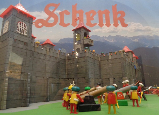 Zu sehen sind hier verschiedene Dioramen die in erster Linie mit Schenk Figuren und Teilen erstellt wurden. Es gibt aber auch zahlreiche Vitrinen in denen man zahlreiche Variationen der Figuren und des Zubehörs sehen kann. Ein besonderes Highlight dürfte wohl die Vitrine sein, in der man nur originalverpackte Sachen aus drei Jahrzehnten bestaunen kann !