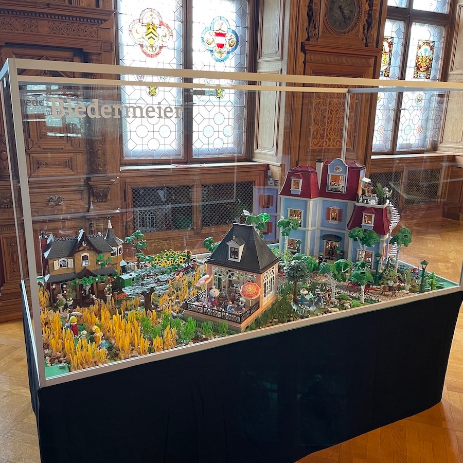 Besonders gelungen ist die Paulskirche: die Mischung aus Kolosseum und Stecksystem und nicht zuletzt die Sandsteinfarbe (dabei fällt mir erst auf, wie sehr die Farbe im Original Playmo fehlt).