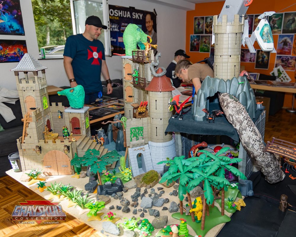 Nun ja, Lennestadt und damit das Sauerland liegen doch schön zentral und wir haben dort immer Leute von Kiel bis München als regelmäßige Besucher dabei. Dieses Jahr kam ein Gast mit Frau und ein Besucher aus den USA (Joshua Sky mit Frau und Jeremy Bounds), einer aus Irland (Ken Coleman) und drei (Axel Gimnéz und Team) aus Spanien. Die waren alle mit mir und dem Mini-Bemalungs-Künstler Torsten Wittlings in einem Raum und man konnte herrlich mit ihnen Fachsimpeln, Späße machen und erfuhr unter der Hand auch so einiges was in den nächsten zwei Jahren noch an Figuren mit Minicomics herauskommt.