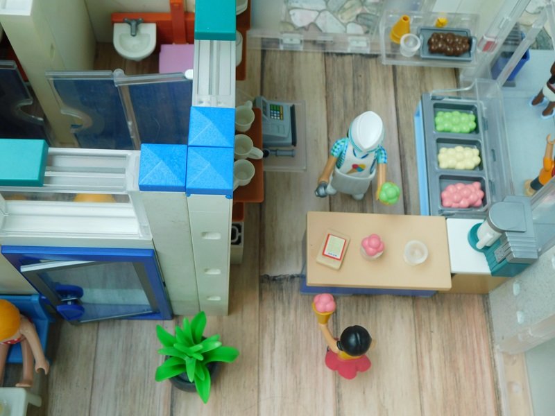 Blick in die Eisdiele mit Cafe