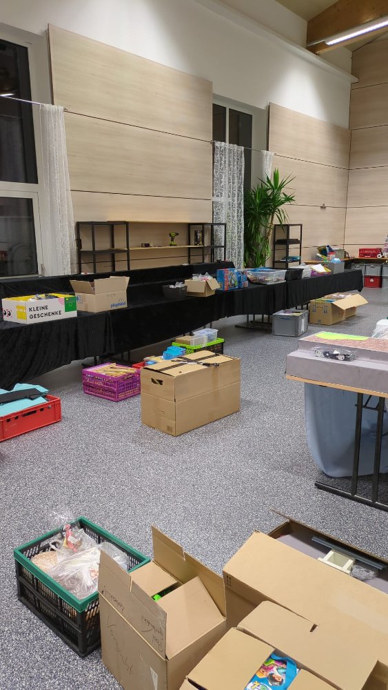 seit Mittwoch Nachmittag wird die Halle aufgehübscht.