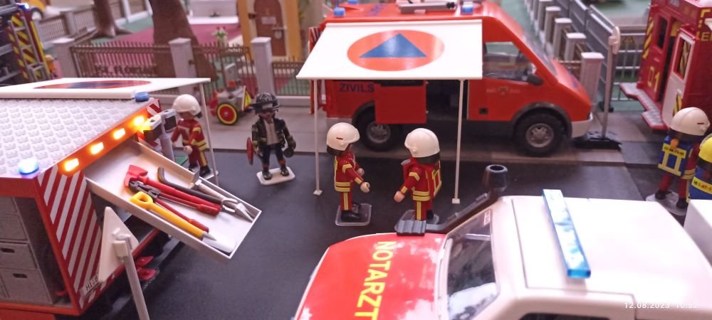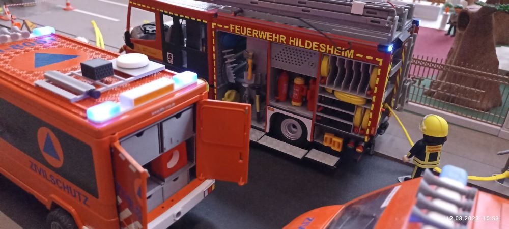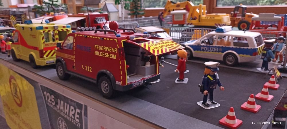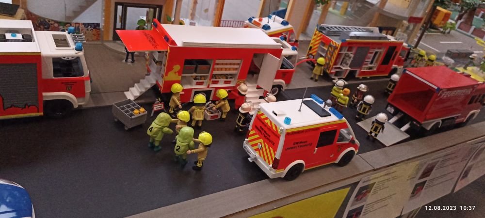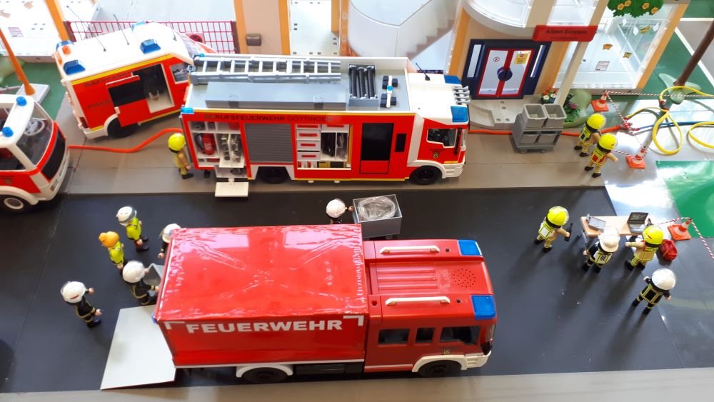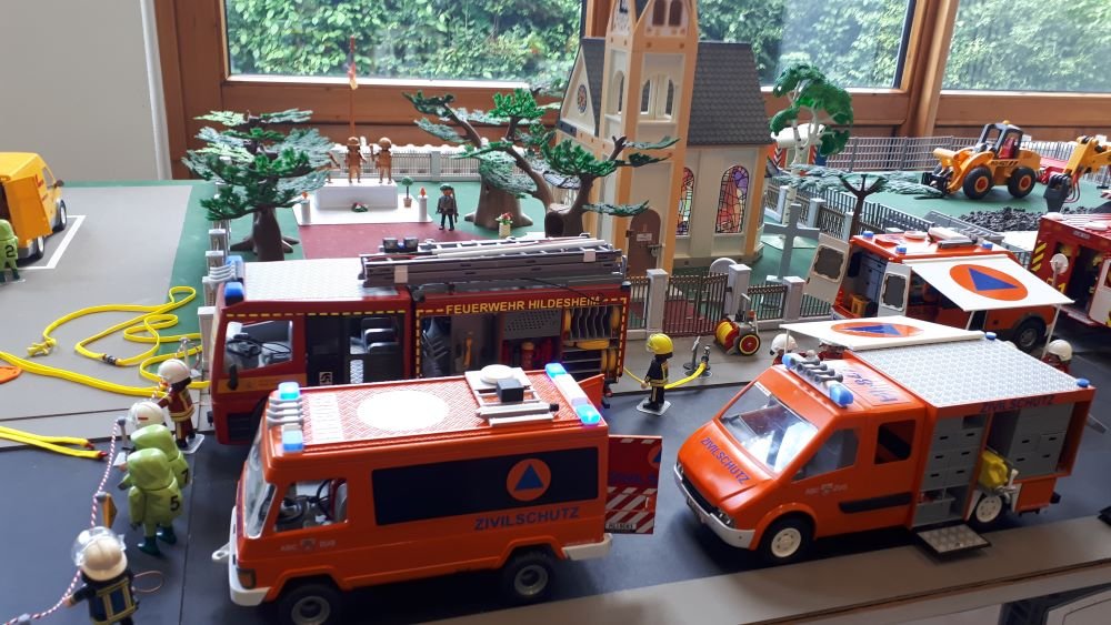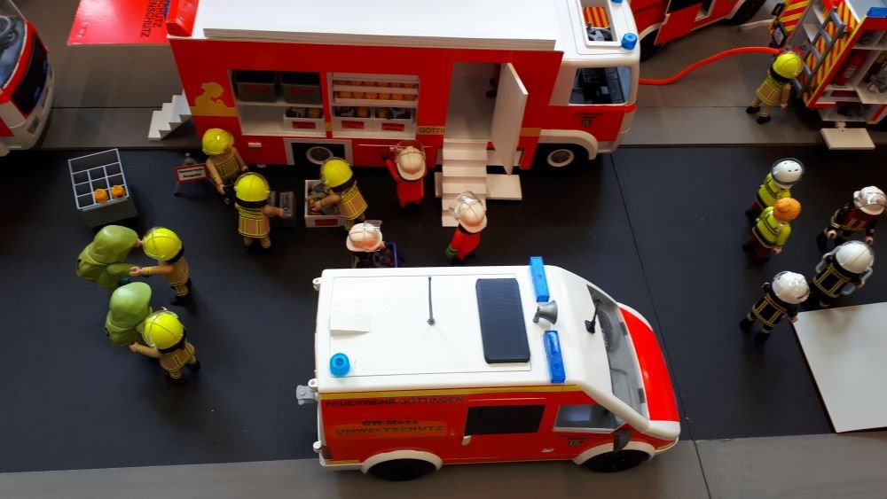Björn (bjoerns-klickys.de) und Niklas (Playmobil Feuerwehr Göttingen) hatten ein Diorama zum Thema aufgebaut.
