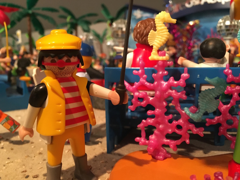 den Kassenwagen gab es so nie zu kaufen und ist eine Sonderanfertigung. Die Bühne im Zirkus unter Wasser ist das Kasperltheater 4239 mit veränderter "Findet-Nemo"-Dekoration (Unterwasser-Rückwand, Dory/Nemo/Squirt). Alle anderen Teile sind Original-PLAYMOBIL (zum Teil US-exklusive Sets). Die Clowns sind ebenfalls frei zusammengestellt. Welche Sets bzw. Zusammenstellungen sehen für Dich besonders nach Customizing aus?