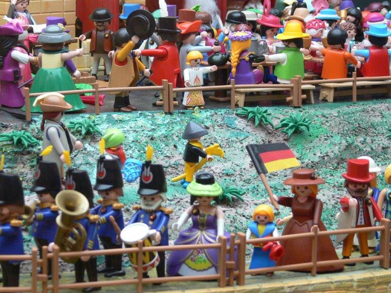 Hallo Jörg,JTD hat geschrieben:Hallo zusammen,bricoleur hat geschrieben:Ich habe hier so einen ganz dicken Schinken über Hambach. Da ist auf dem Innendeckel und Vorsatzblatt der Hintergrund dieser Lithografie ganz groß abgebildet. Da sehe ich Rot-Gold-Schwarz, Gold-Schwarz-Rot, Schwarz-Rot-Schwarz, Rot-Schwarz-Gold und Schwarz-Gold-Rot. Irgendwie scheinen die sich damals noch nicht so einig gewesen zu sein. Ich denke, wenn man heute in einem Playmobil-Diorama die aktuelle deutsche Flagge nimmt, dann fällt das höchstens historisch Sachkundigen auf. Den Otto-Normalbetrachter würde man sonst nur verwirren, und Schulkinder sowieso. Es ist eh schon schwierig genug, heute den Sinn dieses Events zu vermitteln.