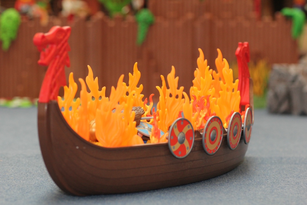 ein sehr schönes Dio mit beeindruckender Darstellung eines Wikingerbegräbnisses.