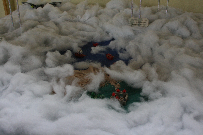 bei diesem Dio stand ich im ersten Moment da und dachte; warum ist da Watte und so kleine Sachen. Dann fiel mir erst auf das die beiden Schiffe ja in einiger Höhe fliegen und somit auf der Erde alles klein ist.