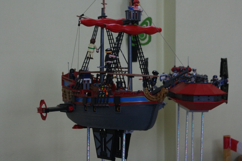 Die Idee mit den langen Stangen finde ich klasse, genau so wie die Raketen und den Enterhaken die durch die Luft fliegen! :bang1