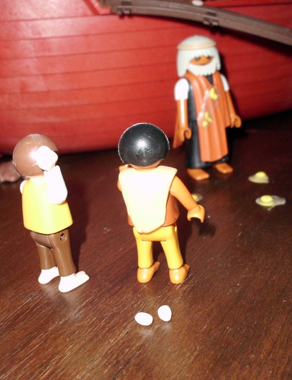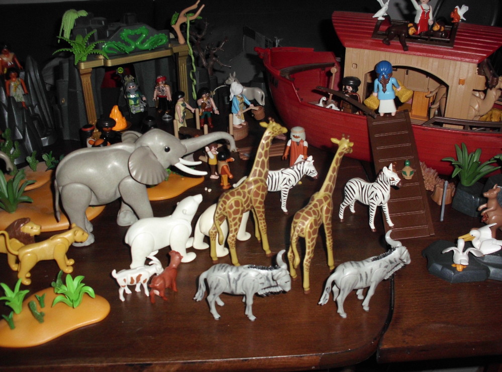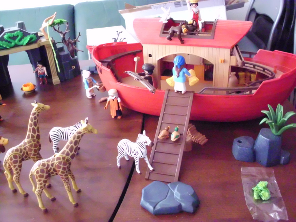 Letzten Sonntag erfuhr ich buchstäblich in letzter Minute vor dem Gottesdienst, dass ich im Kindergottesdienst Krankheitsvertretung machen musste. Woher so schnell Ideen schöpfen? Ich erzählte kurzerhand aus dem Nähkästchen von meinem Archen-Aufbau und den Gedanken, die mir dabei gekommen waren. Im Gespräch mit den Kindern fragte ich: "Welche Tiere waren denn auf der Arche?" Voller Stolz über seine offenbar neu erworbenen zoologischen Kenntnisse platzte ein sechsjähriger Steppke heraus: