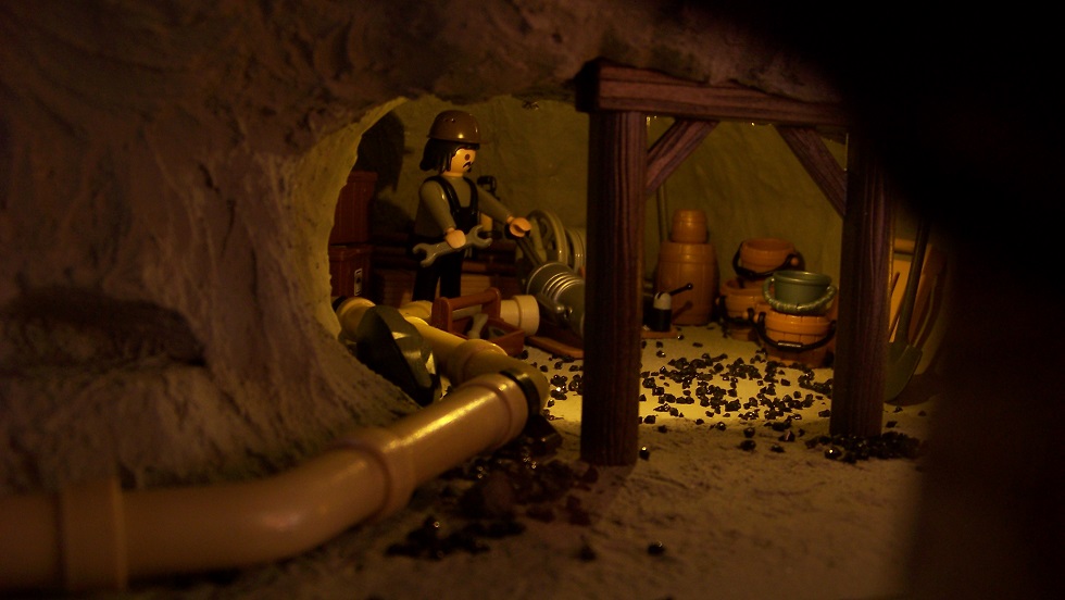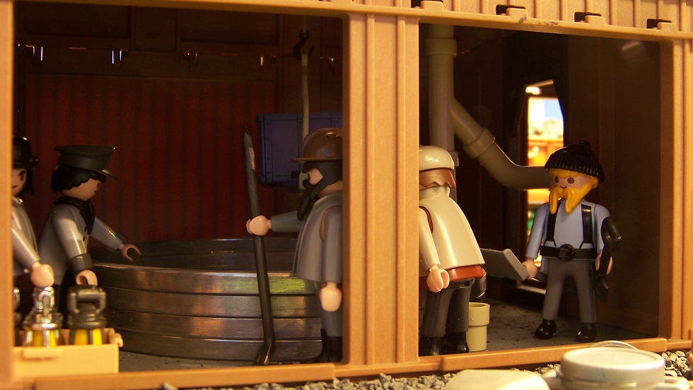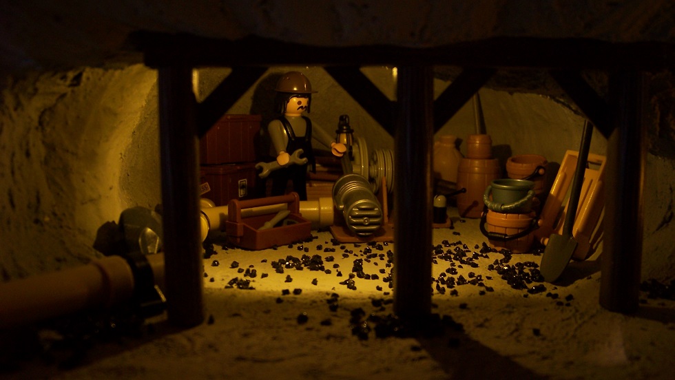 An der Vitrine, die extra für das Zechen-Diorama angefertigt worden ist,