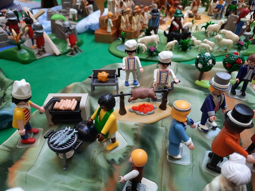 An anderen Stellen waren es moderne Hüte, T-Shirts oder Frauen mit Hosen - das passt nicht so richtig in die Zeit. Jesus am Kreuz is gut getroffen (gut gemacht!), aber der Schreigüne rechts davon dominiert die Szene doch arg. Vermutlich waren die beiden rechts und links ähnlich karg gekleidet wie Jesus. Zumindest habe ich das so in Erinnerung. Habe dazu eine historisch korrekte Dokumentation gesehen (“Life of Brian”).