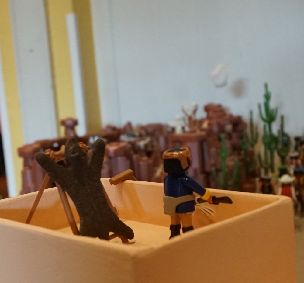 Klasse gemacht...... Aus welchem Material sind die Pueblo aus Holz?? Ich würde vielleicht in Bodennähe ein dunkleres braun oder schwarz nehmen um den Zahn der Zeit zu gestalten? aber trotzdem bin ich hin und weg