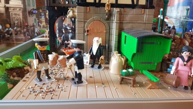 Es gibt in seinen Dioramen häufiger Dinge, die nicht hineingehören, damit Interesse bei Kindern geweckt wird.