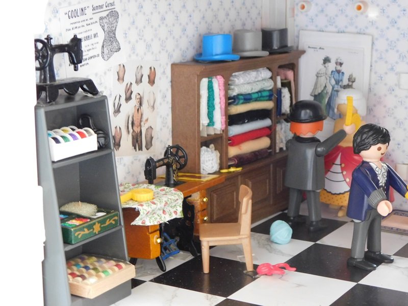 Das erste Haus ist ein Bekleidungsladen mit Schneiderei, dass innen so aussieht.