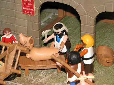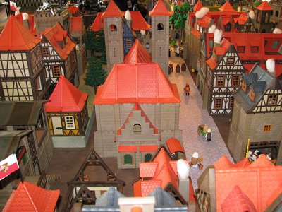 Hut ab, da habt Ihr was echt Tolles auf die Beine gestellt! Die Zimmerleute, Schlachter, Mühle und Müller... genial! Diese aufgeständerte Häuserzeile ist klasse, auch das "Haus auf Stelzen" (steht vermutlich an einem Stadttor?) gefällt mir sehr gut. Von der Basilika würde ich gern noch mehr sehen.