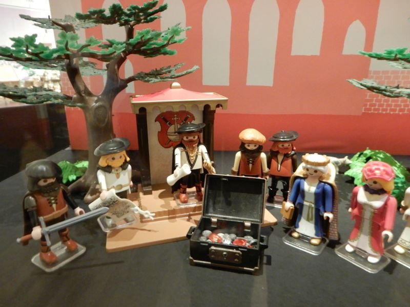Zusätzlich gab es in verschiedenen Vitrinen im Museum entsprechende historische Playmobil-Figuren: