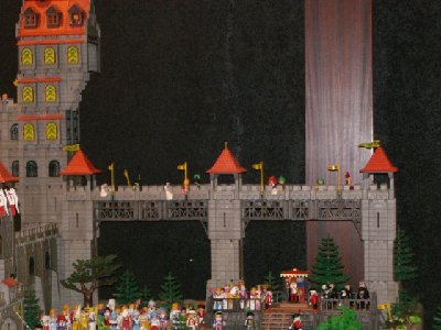 Die Besonderheiten dieses wunderschönen Dioramas waren für mich nicht nur die nassen Elemente mit funktionierendem Wasserrad, sondern auch die Mittelalterstadt wo jede einzelne Laterne der Häuser brannte :gruebel