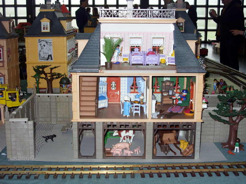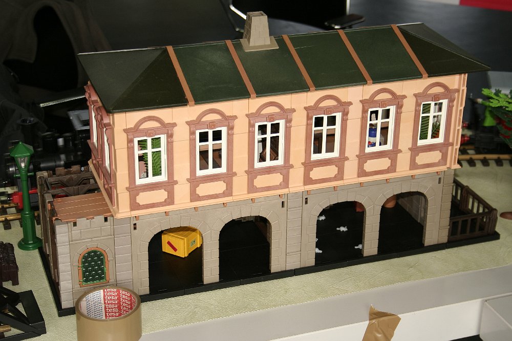 Beige hätte ihnen besser gefallen, hat Nobody einen zweiten gebaut und beige gespritzt. Bei diesem ist auch die Treppe ins Obergeschoss vom neuen Einfamilienhaus (sehr fein!), die beim ersten noch ganz selbst gemacht war. Der Rotton ist auch ein wenig dunkler.