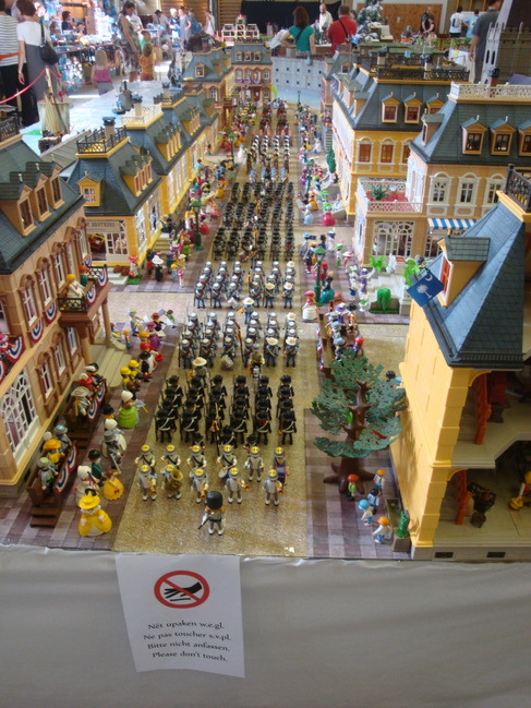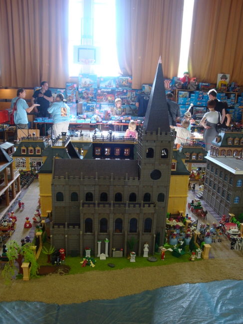 Das Spitzdach, und auch sonstige Dachelemente der Kirche waren / sind höchstwahrscheinlich aus Pappe (kann ich wegen "Do not touch" nicht 100%ig sagen.....ist aber auf jeden Fall kein Playmo ! Auch mir hat die Kirche sehr imponiert.