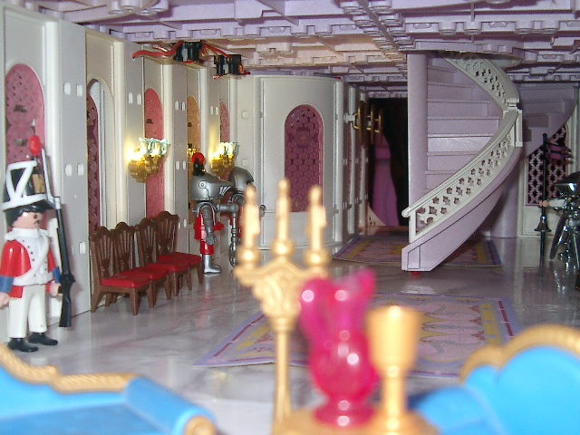 Zur Erklärung: Das Schloss war zerlegt, nur die Bodenplatten jeder Etage waren fix zusammengesteckt und mit Marmorfolie verklebt um sie so transportieren zu können. (Und selbst diese Platten gingen bei einem Grundmaß von 180 x 160 nicht in unser Auto rein, wir mussten sie mit einem Kleinbus transportieren lassen.)